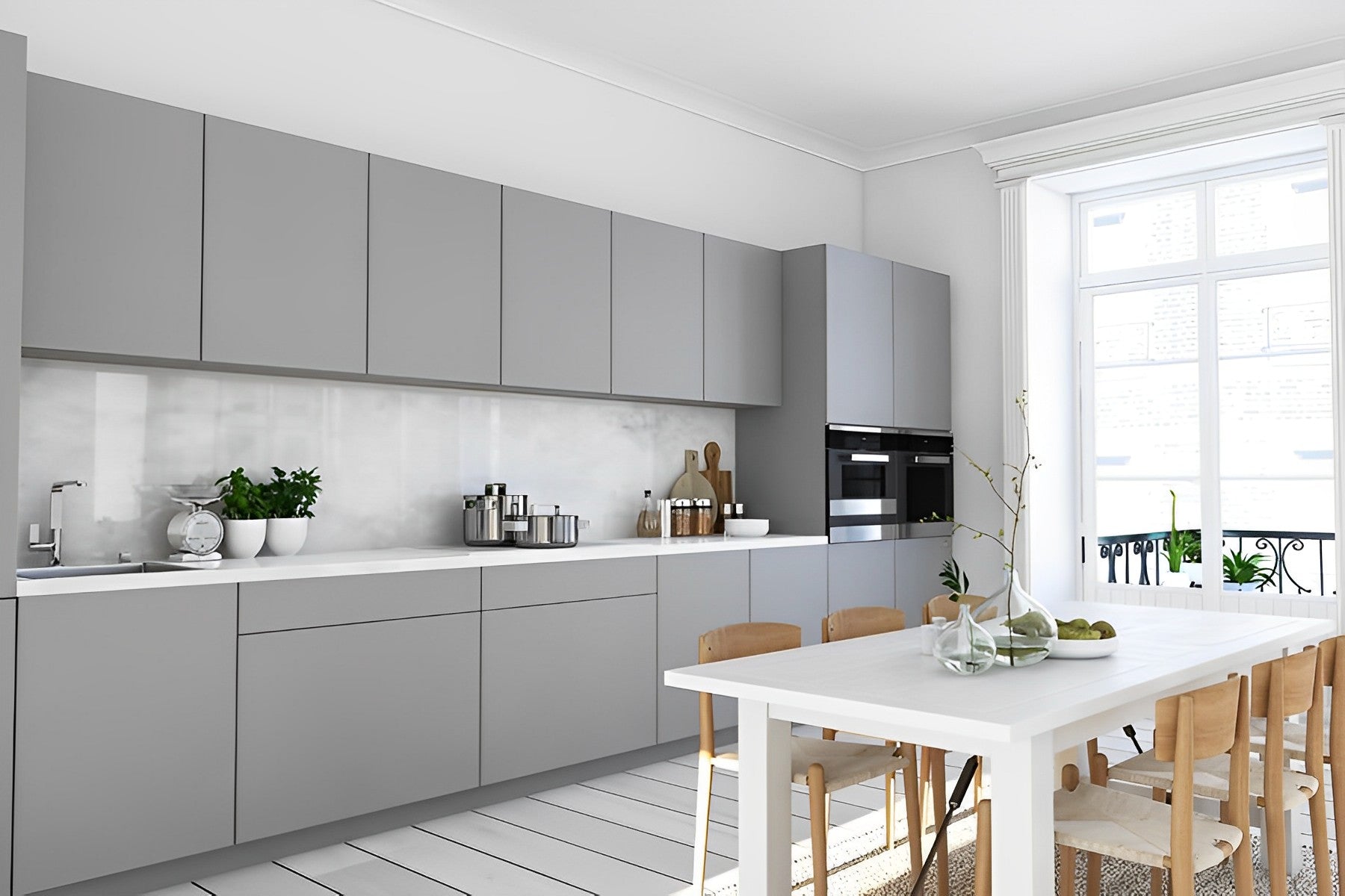Matte Grey Kitchen Cabinets with Plywood Box — Modern Style
