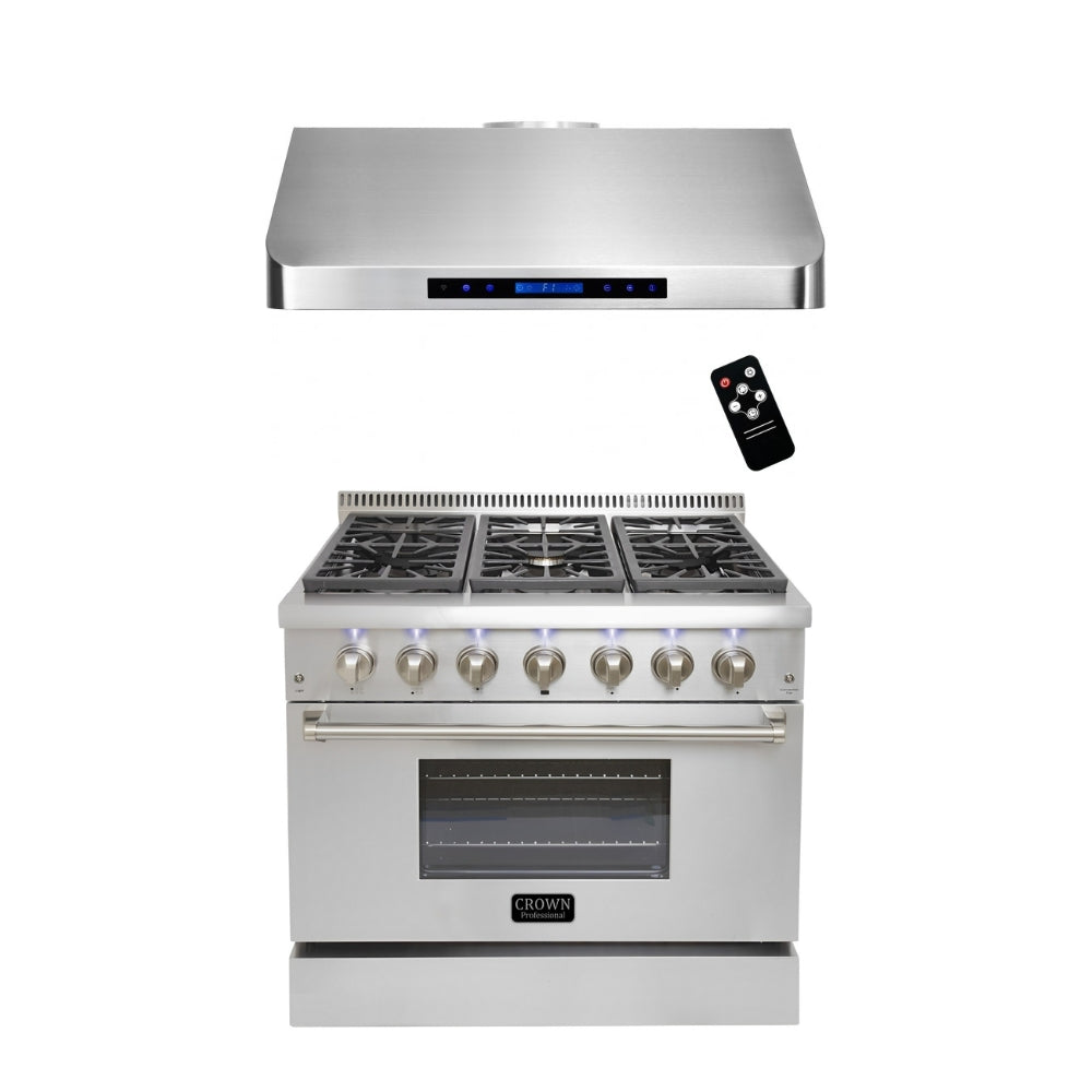 2-PC Bundle Set: Crown 36" Under Cabinet Range Hood + Crown 36" Dual Fuel Gas Range