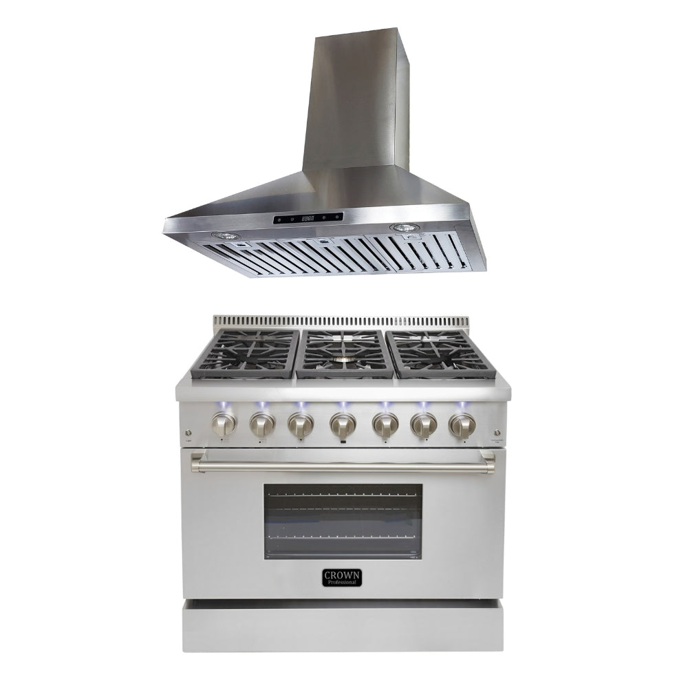 2-PC Bundle Set: Crown 36" Wall Mount Range Hood + Crown 36" Dual Fuel Gas Range