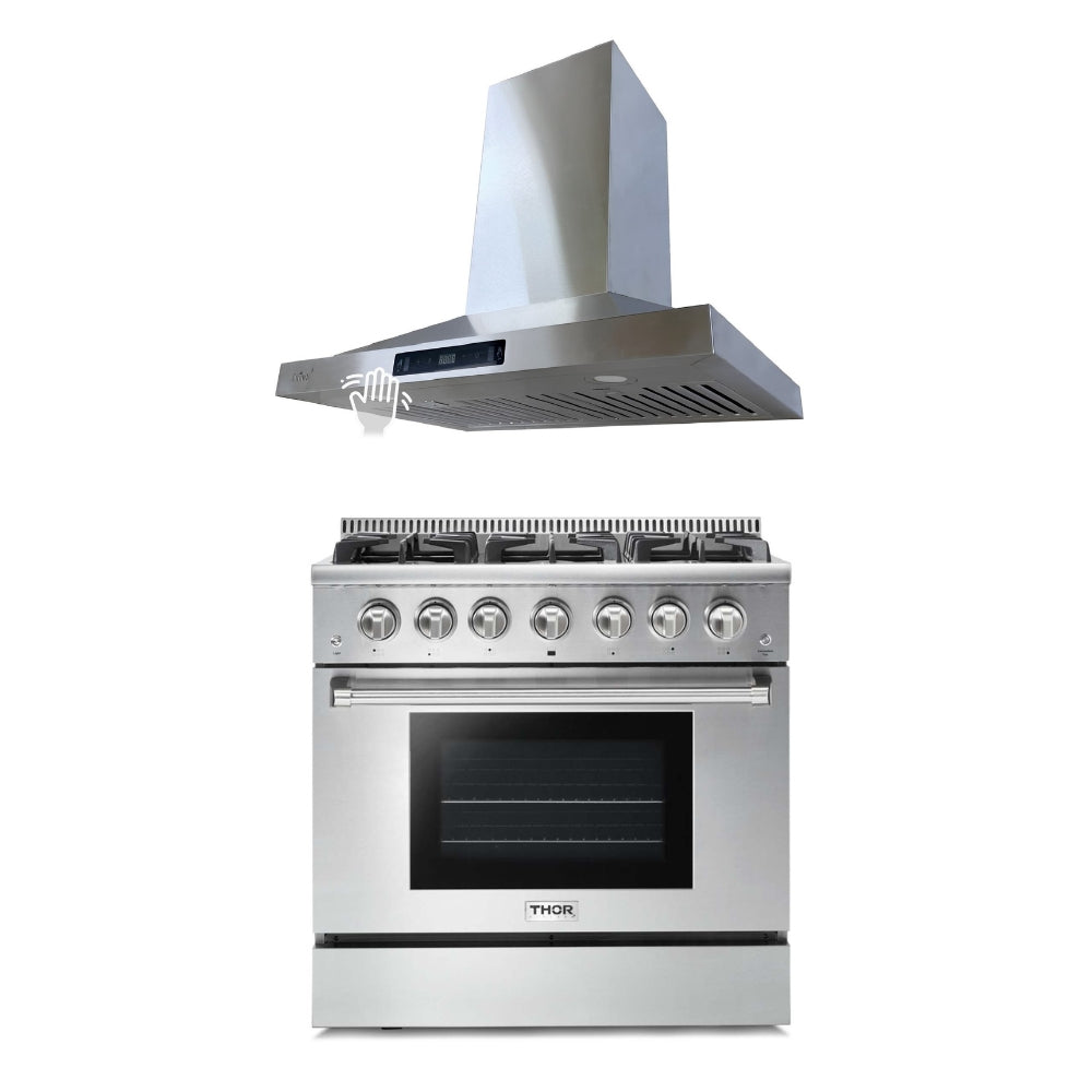 2-PC Bundle Set: Crown 36" Wall Mount Range Hood + Thor Kitchen 36" Gas Range