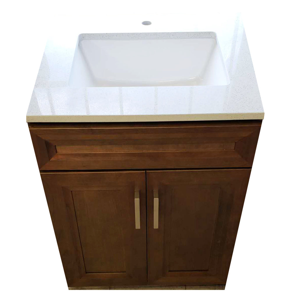 Crown 24 inch Solid Wood Bathroom Vanity Single Sink is made with solid maple wood. All the colors are vibrant and eye-catching. Only high-quality materials are used to make all of our vanities. Soft-closing doors and drawers prevent scratches and cracks.