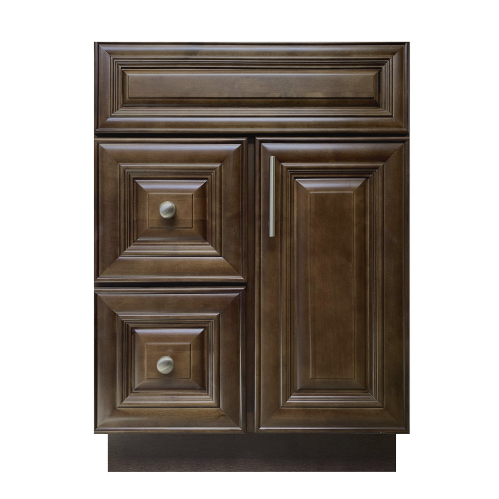 The 24 inch Solid Wood Bathroom Vanity features simple removable doors and drawers for easy inside cleaning. ‘L’ Bracket reinforces cabinets for heavy granite, marble, or other stone tops. Lot of space inside the cabinets to fit in all of your necessary items. Easy assembly and plumbing installation.
