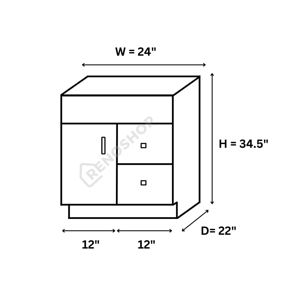 24 inch Solid Wood Bathroom Vanity Cabinet Only VSD24R