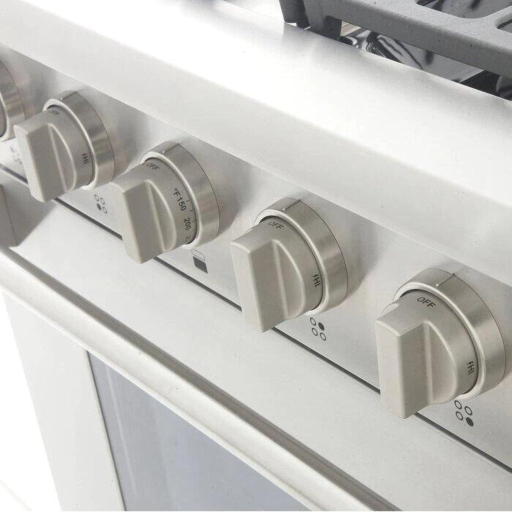 - Full stainless steel dual fuel gas range with professional handle will help you create the ultimate cooking experience