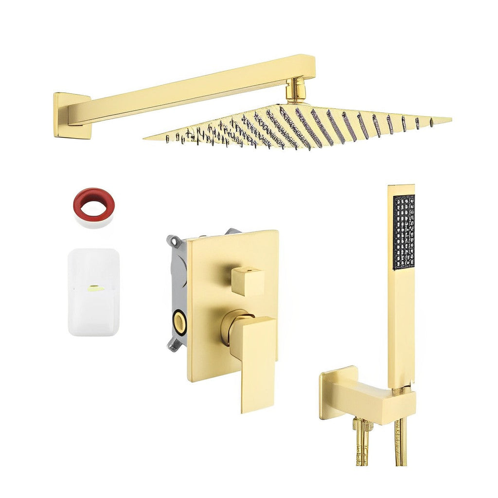 Pressure Balance Valve, Wall-Mount Shower Head, Slide Bar with Modern Hand Shower, Hand Shower Water Connection and Two-Way, In-Wall Diverter