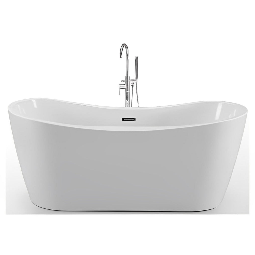 Refined and elegant, this 62-inch freestanding bathtub will become one of the main elements of your bathroom décor. Including an overflow and push-button centre drain, this tub offers a backrest on both sides, allowing you take a seat on whichever side you prefer. Relax and sit comfortably thanks to its oval shape and inclined sides that fit your body's shape. Plus, its depth keeps your whole body warm for optimal relaxation. Made from fiberglass-reinforced acrylic, the bathtub's glossy white finish is durable and easy to clean. Add a freestanding bath faucet to complete the set.