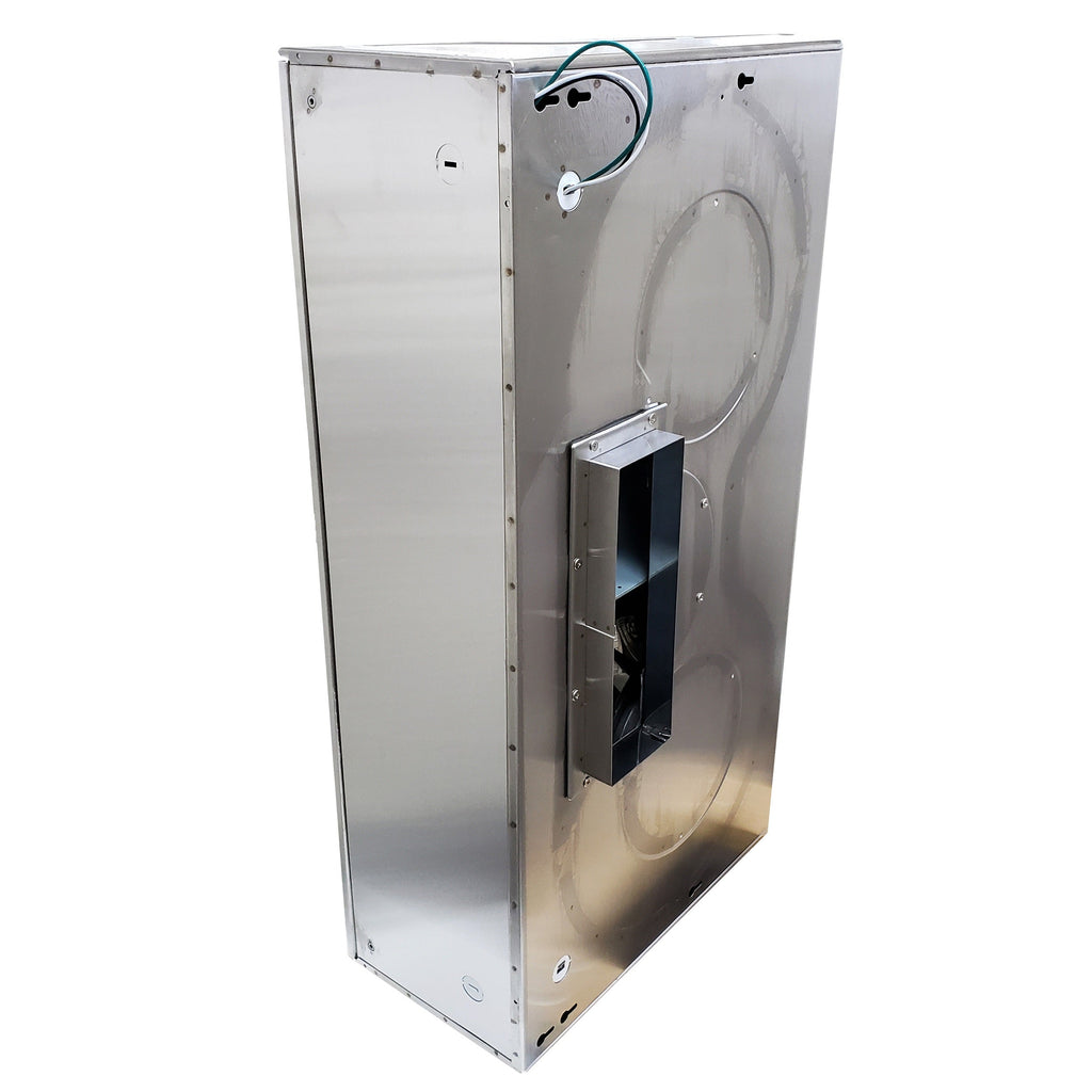 CSA Certified, Maximum Motor Power up to 260 W with 120V~ /60Hz Voltage. With four-speed control, the Multi-vent system features a vent from the top with a Round 6" or Rectangle 3 ¼ x 10" and features a 40 W Halogen light bulb. The Stylish Stainless Steel Under Cabinet Range Hood Dimensions are 29.75" X 22" X 8". The Under Cabinet Range hood comes with 5 years warranty on the motor and 1 year on other parts