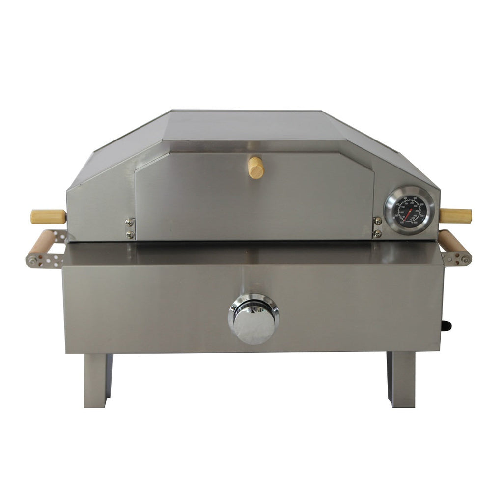 CROWN mini Gas Portable Pizza Oven is a great choice when it comes to outdoor cooking. This portable pizza oven features foldable legs which makes it easy to carry anywhere. It is also compact in size & very convenient. Its wooden handle have a good grip to it, which makes it easy to open whether your hands are oily or not.