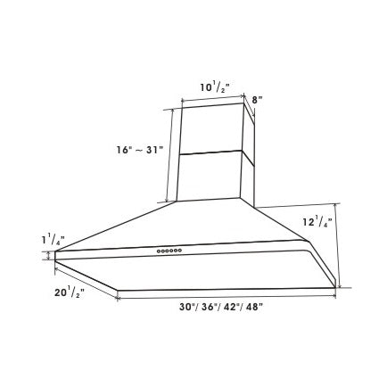 - Maximum Exhaust Air Flow Powerful suction of 900 CFM with stylish wall mount design