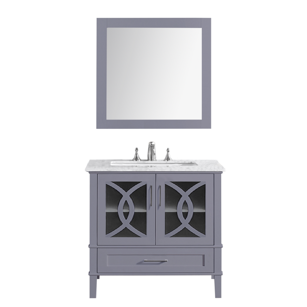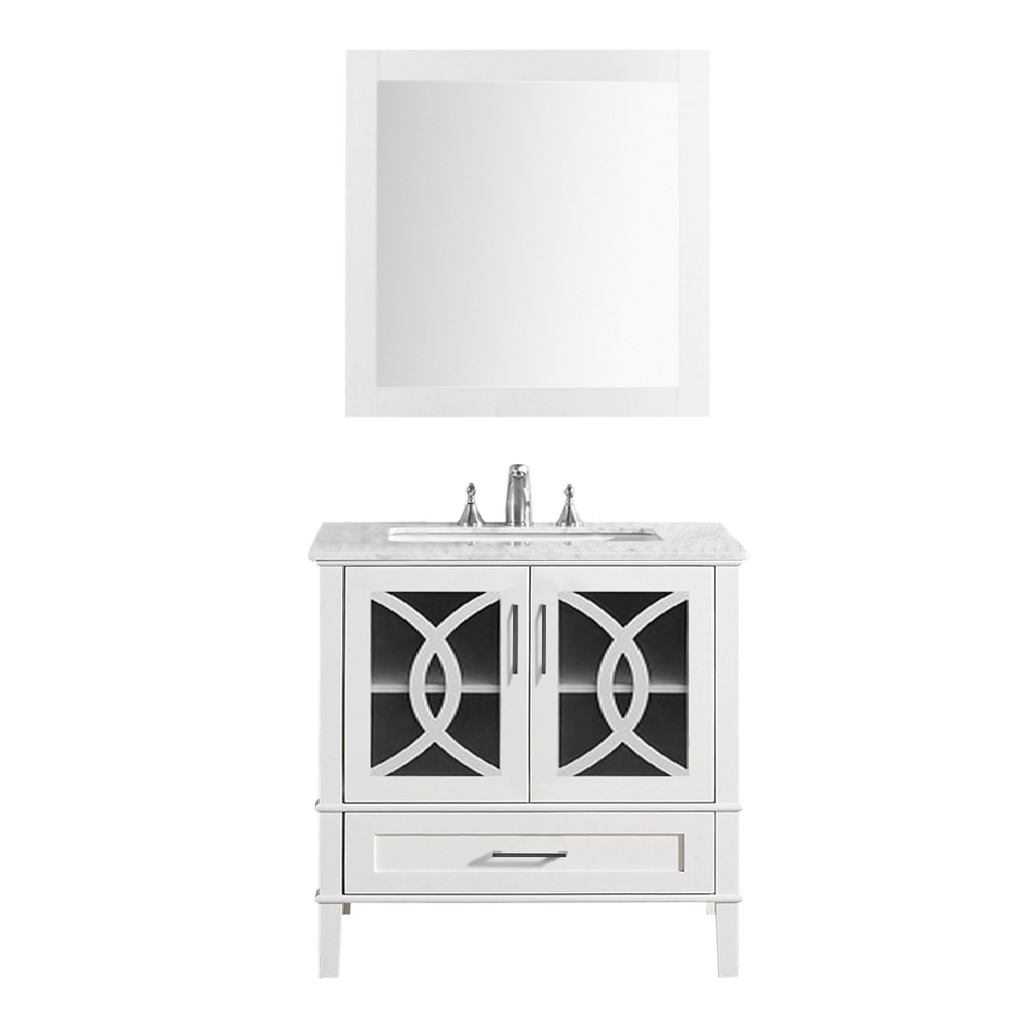 36" Solid Wood Bathroom Vanity with Marble top & Mirror Set T9313-36