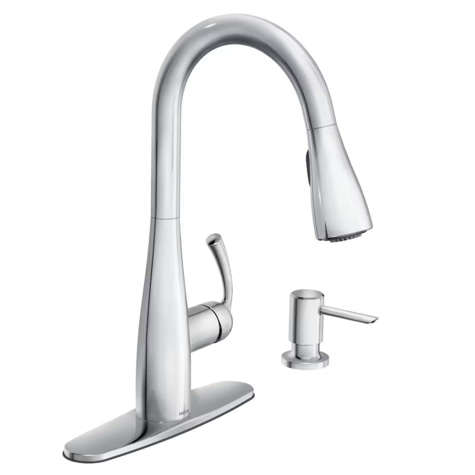 Style meets functionality in the Essie Pull-Down Sprayer Kitchen Faucet from MOEN, boasting transitional design appeal while showcasing several of MOEN's top innovative features. Essie utilizes Reflex technology, engineered specifically for pull-out and pull-down movement by undocking easily, moving with you and retracting effortlessly when you're done. Also designed with Power clean technology that delivers 50% more spray power than faucets without Power Clean, Essie ensures efficient washing with less effort.