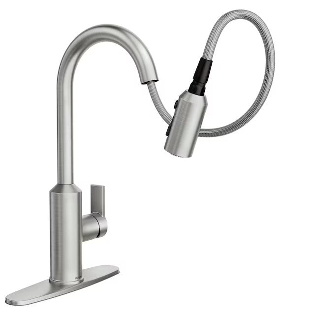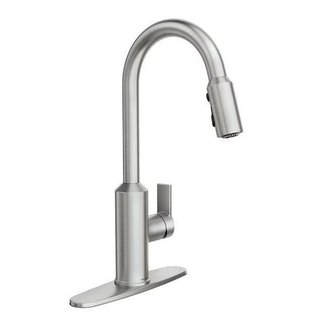 From intimate galley kitchens to large gourmet workstations, Meena faucets bring a refreshed look to your home. Simple lines create the contemporary style, while a pulldown wand delivers in-demand functionality. Featuring Moens exclusive Power Boost technology, Meena has a four-function pulldown spray wand with standard stream and spray, as well as boosted stream and spray modes.