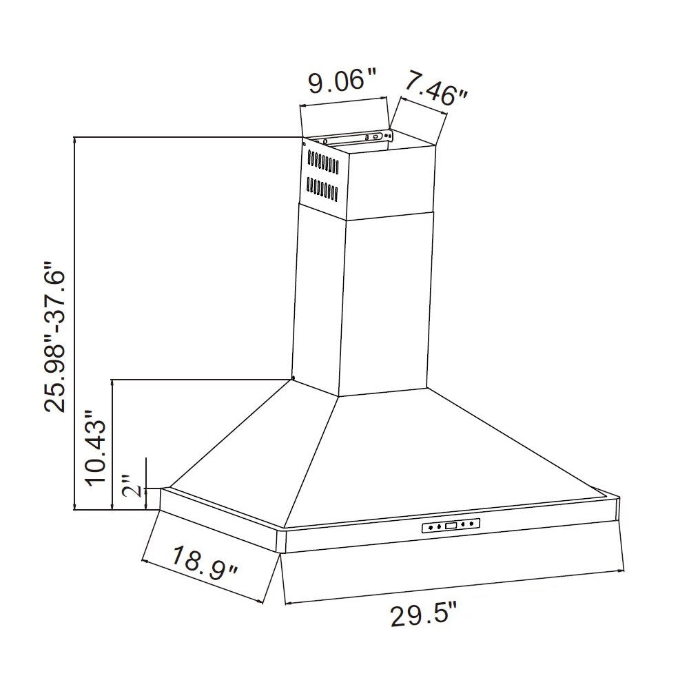 - Wall Mount Range hood comes with 1-year manufacturer warranty on all parts. Dimension are 29.53"L X 18.90"W X 37.60"H