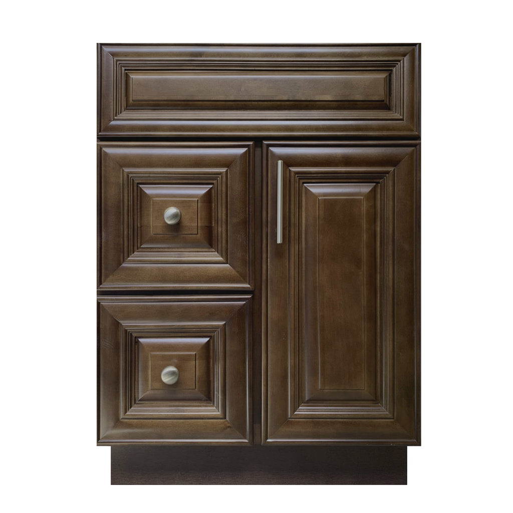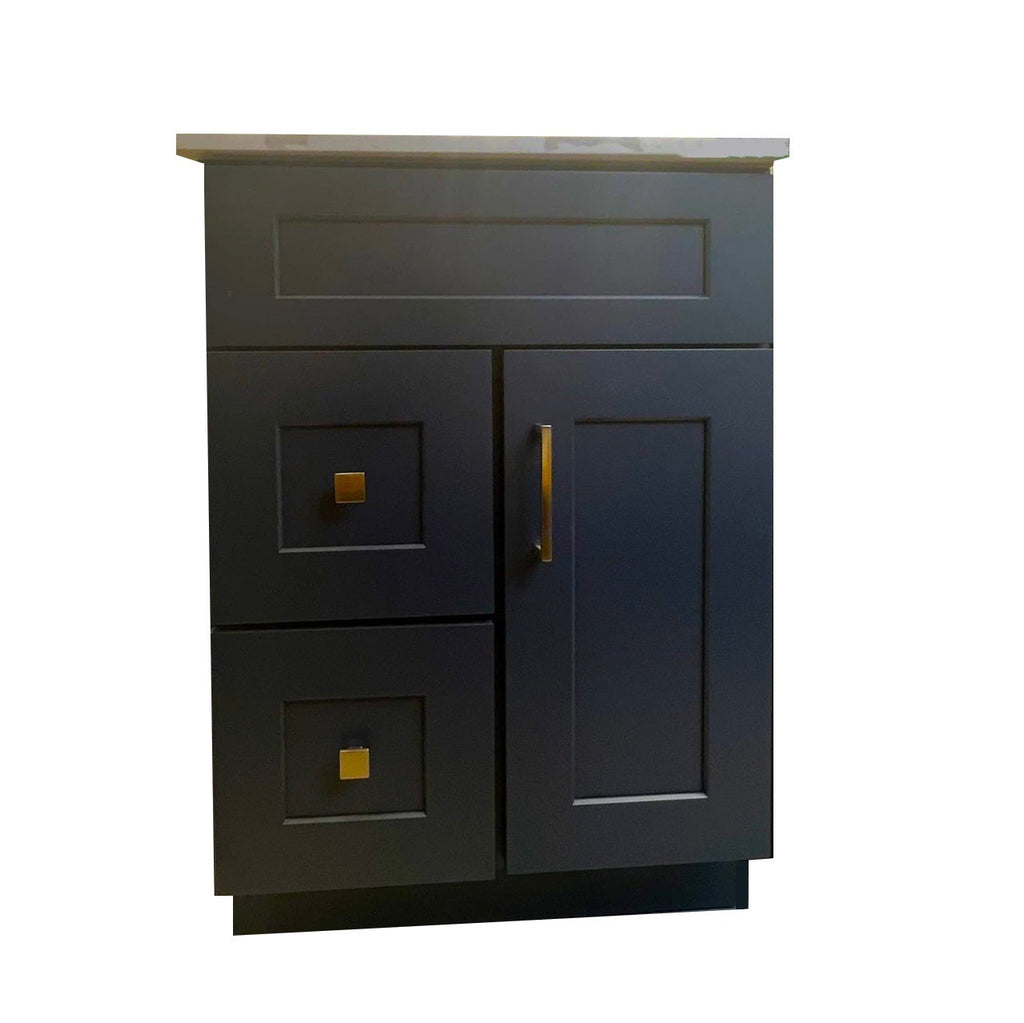 Crown 24 inch Solid Wood Bathroom Vanity Single Sink is made with solid maple wood. All the colors are vibrant and eye-catching. Only high-quality materials are used to make all of our vanities. Soft-closing doors and drawers prevent scratches and cracks. The door is on the right side. Includes countertop and sink.