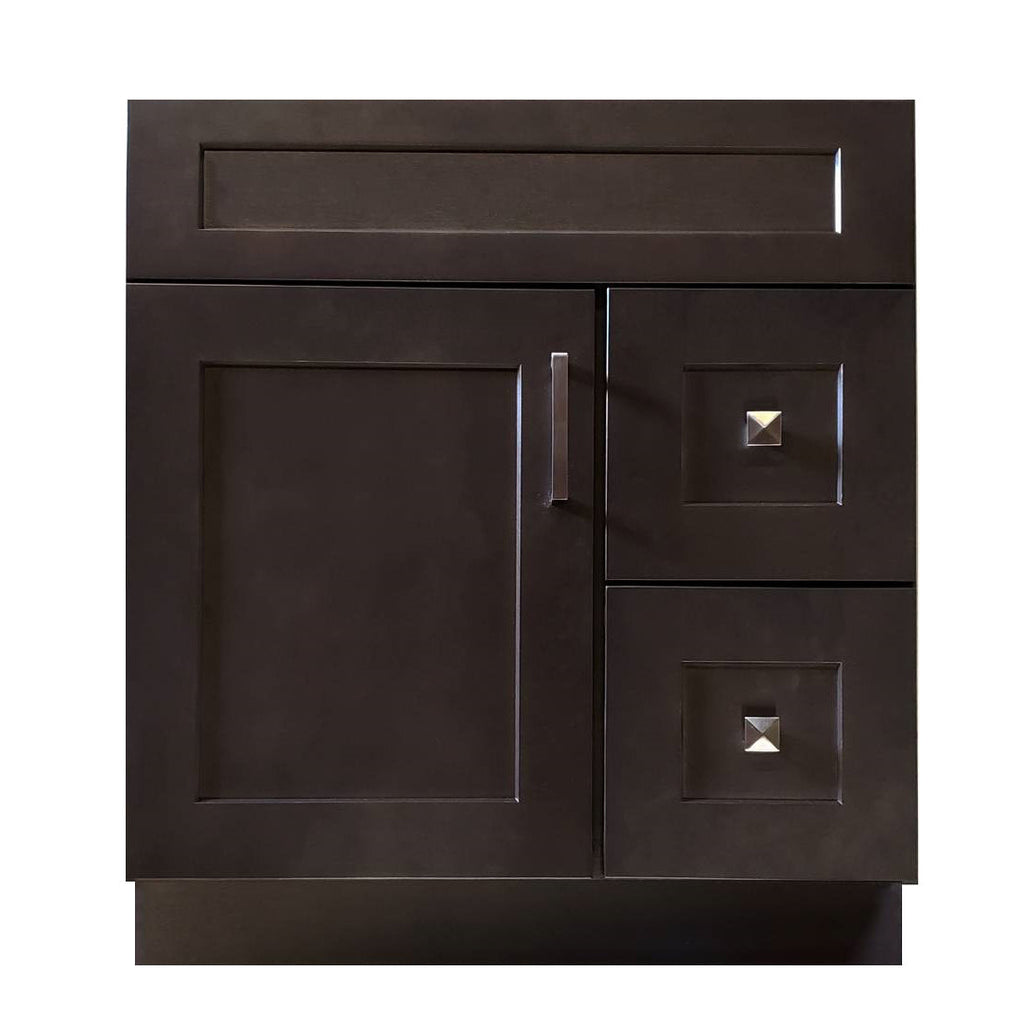 Crown 30 inch Solid Wood Bathroom Vanity Single Sink is made with solid maple wood. All the colors are vibrant and eye-catching. Only high-quality materials are used to make all of our vanities. Soft-closing doors and drawers prevent scratches and cracks. The door is on the left side. Includes countertop and sink.