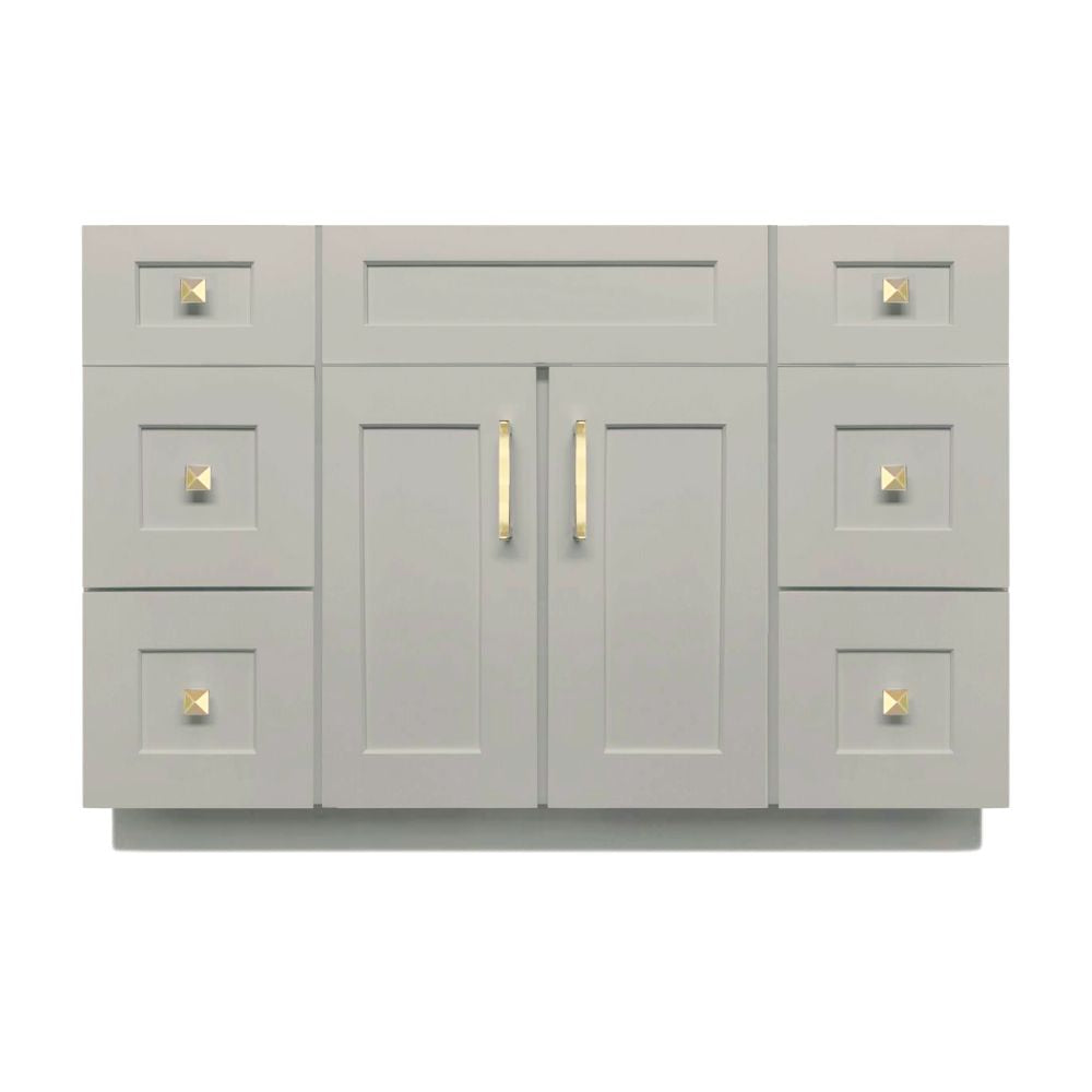 This 48 inch Solid Wood Bathroom Vanity features simple removable doors and drawers for easy inside cleaning. ‘L’ Bracket reinforces cabinets for heavy granite, marble, or other stone tops. Lot of space inside the cabinets to fit in all of your necessary items. Easy assembly and plumbing installation.