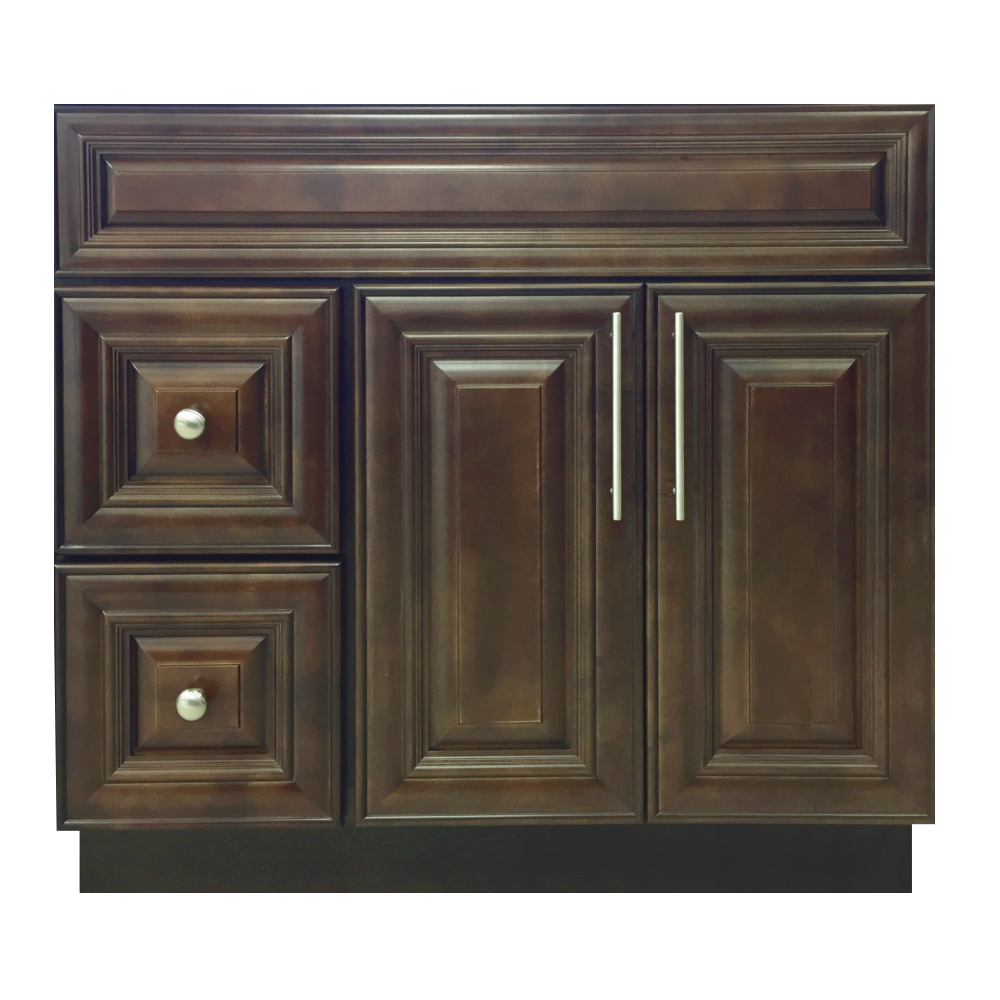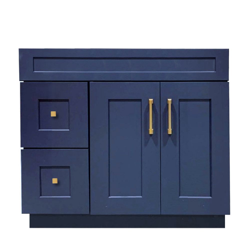 Crown 36 inch Solid Wood Bathroom Vanity Single Sink is made with solid maple wood. All the colors are vibrant and eye-catching. Only high-quality materials are used to make all of our vanities. Soft-closing doors and drawers prevent scratches and cracks. Doors on the right side. Includes countertop and sink.
