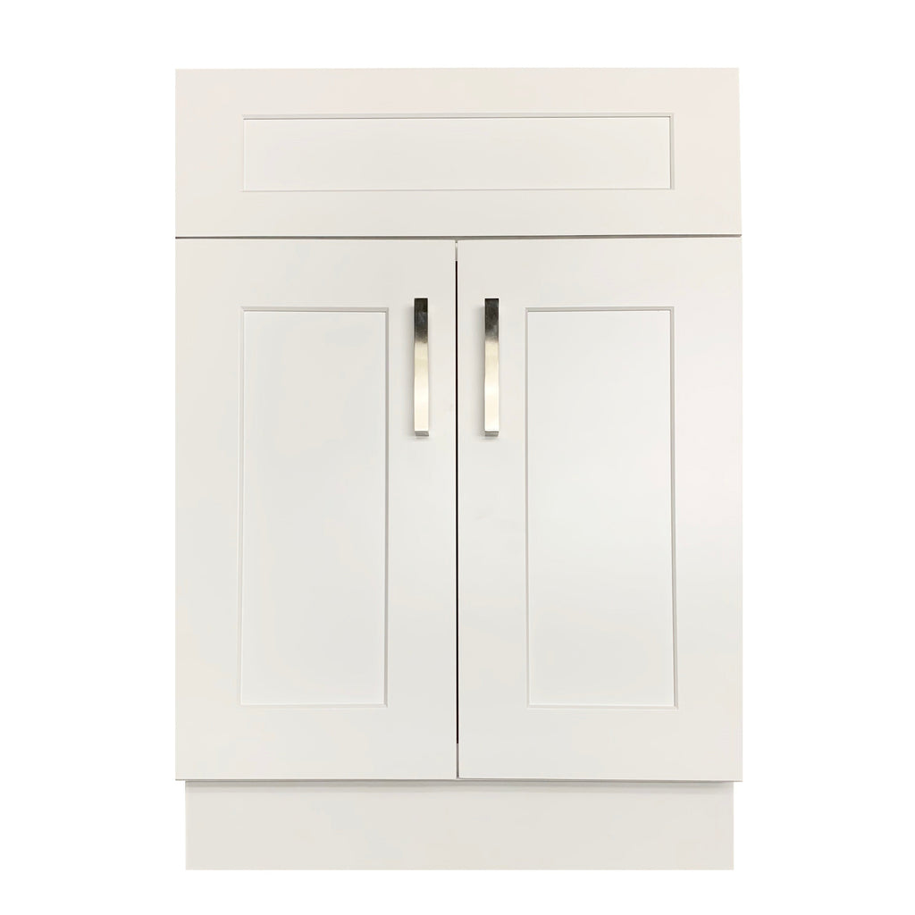 Crown 24 inch Solid Wood Bathroom Vanity Single Sink is made with solid maple wood. The colors are vibrant and eye-catching. Only high-quality materials are used to make all of our vanities. Soft-closing doors and drawers prevent scratches and cracks. Double door vanity includes countertop and sink.