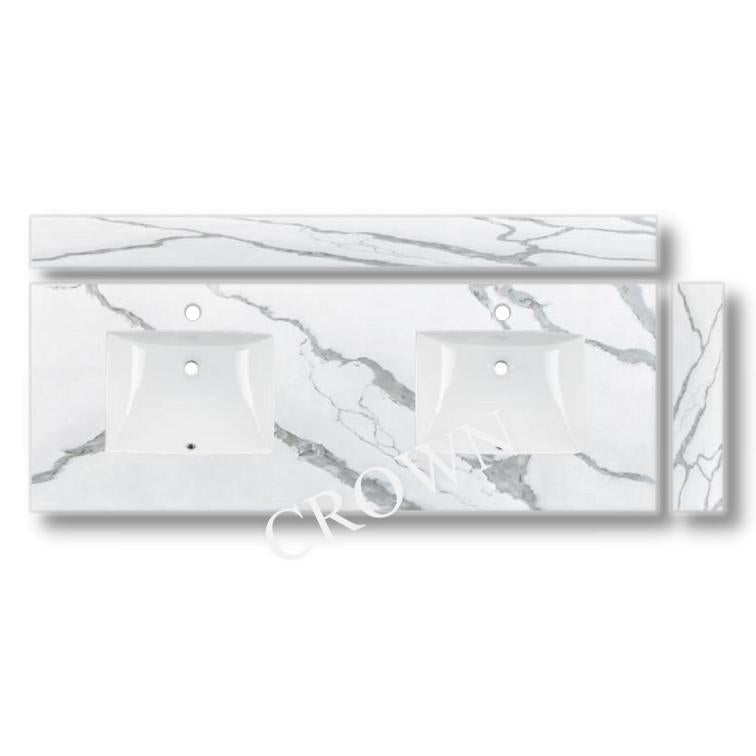 Crown 60 inch Solid Wood Double Sink Bathroom Vanity is made with solid maple wood. All the colors are vibrant and eye-catching. Only high-quality materials are used to make all of our vanities. Soft-closing doors and drawers prevent scratches and cracks. Includes countertop and sink.