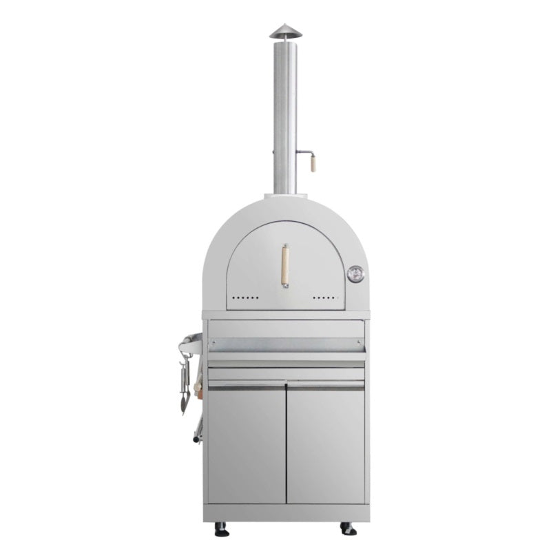 - The outdoor pizza oven and cabinet complement and fits seamlessly with the other pieces of modular outdoor kitchen suite